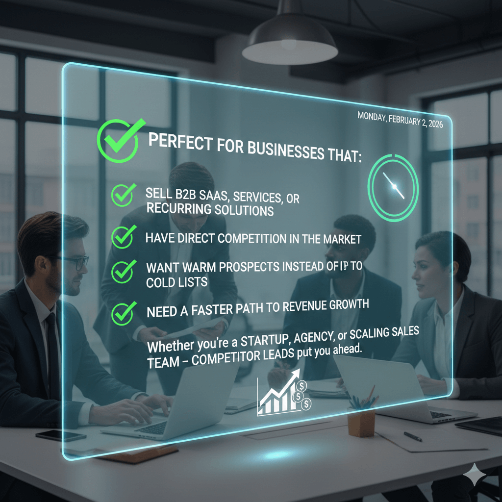 Whether you’re a startup, agency, or scaling sales team — competitor leads put you ahead.